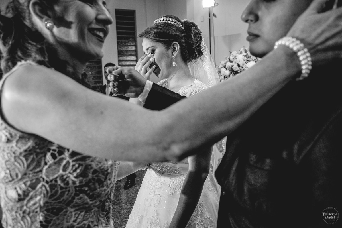 Fotografia de casamento pelo fotógrafo Guilherme Santos, noiva e sua mãe no making of na chegada do buque.
